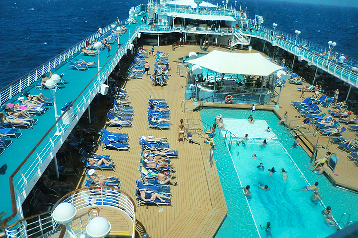 On the fifth day we were at sea all day so we did what any first time cruiser would do, we enjoyed the bars and the pool deck, where there were always lots of fun activities daily and made several trips to the food court of course.We also got in some sports. Nikks and I had a couple friendly rounds of table tennis, played basketball and tried our hand at a game called shuffleboard.