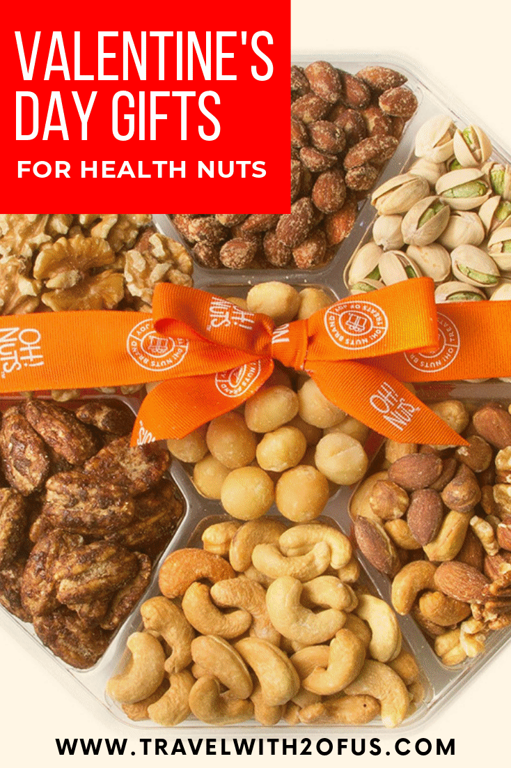 This gift basket has six different varieties of savory nuts. They include cashew nuts, honey pecans, smoked almonds, raw walnuts, mixed nuts, and pistachios. The nuts are roasted in small batches to preserve their natural flavor and texture.▸ Get This Valentine's Day Roasted Nuts Gift Basket.