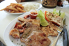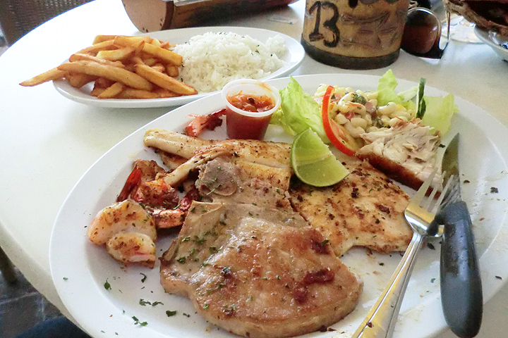 In Punda the place we chose to eat was Iguana Cafe, located on the banks of St. Anna's Bay. It's a wonderful view looking across at Otrobanda.It specializes in grilled foods and serves a variety of international and Caribbean dishes. It's not gourmet food, but the dishes we chose were enjoyed by both of us. I had the pork chop with onions and Nikks had the catch of the day, fried local fish.