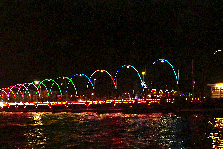 The thing that stands out the most is the Queen Emma Bridge (aka "The Swinging Old Lady). It's a movable bridge which connects the two main districts of Punda and Otrobanda in the capital Willemstad. The bridge opens regularly to allow passage of ships and other ocean vessels.